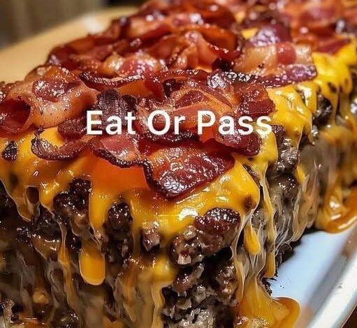 This isn’t your grandma’s meatloaf—it’s an indulgent, over-the-top version loaded with flavor! A juicy ground beef base is baked to perfection, smothered in melted cheddar cheese, and topped with crispy bacon. The gooey cheese drips down the sides while the smoky bacon adds crunch and richness. It’s hearty, comforting, and guaranteed to make everyone at the table say WOW!